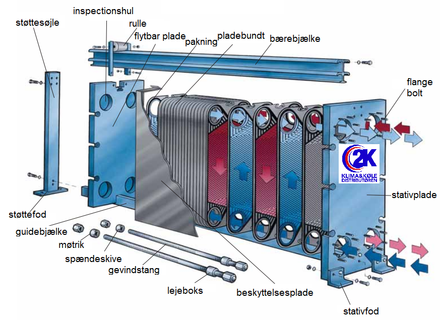 Pladevarmeveksleren består af en ramme med flere varmeoverføringsplader, og kapaciteten kan: